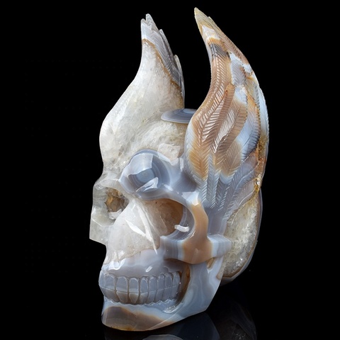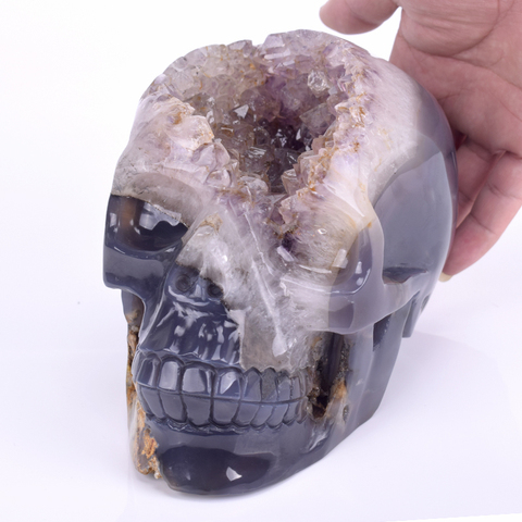 ديكور منزلي عقيق جيود جمجمة رئيس هندي فينج شوي نموذج منحوت يدويًا مجموعة جيود العقيق جمجمة كريستال