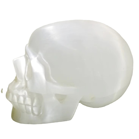 للبيع بالجملة جماجم جبس كريستالية طبيعية بالحجم الطبيعي جماجم سيلينيت كبيرة لفينج شوي ديكور المنزل بنمط محفور